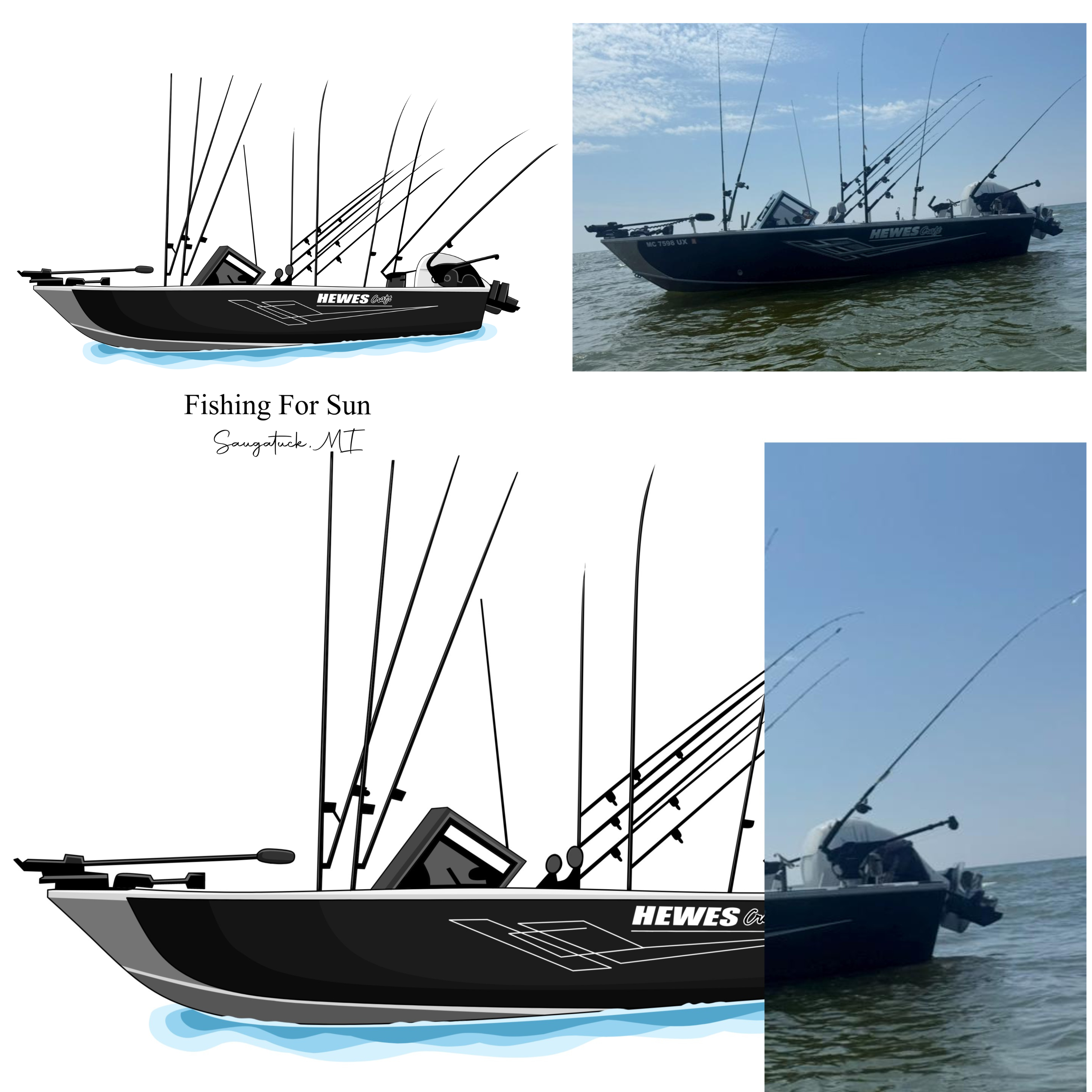 Turn your boat into a clean, detailed line drawing created by a real artist. Each illustration is hand-drawn to match your photo and captures the exact angle and details that make your boat unique. These drawings are perfect for printing on shirts, hoodies, or other custom apparel.