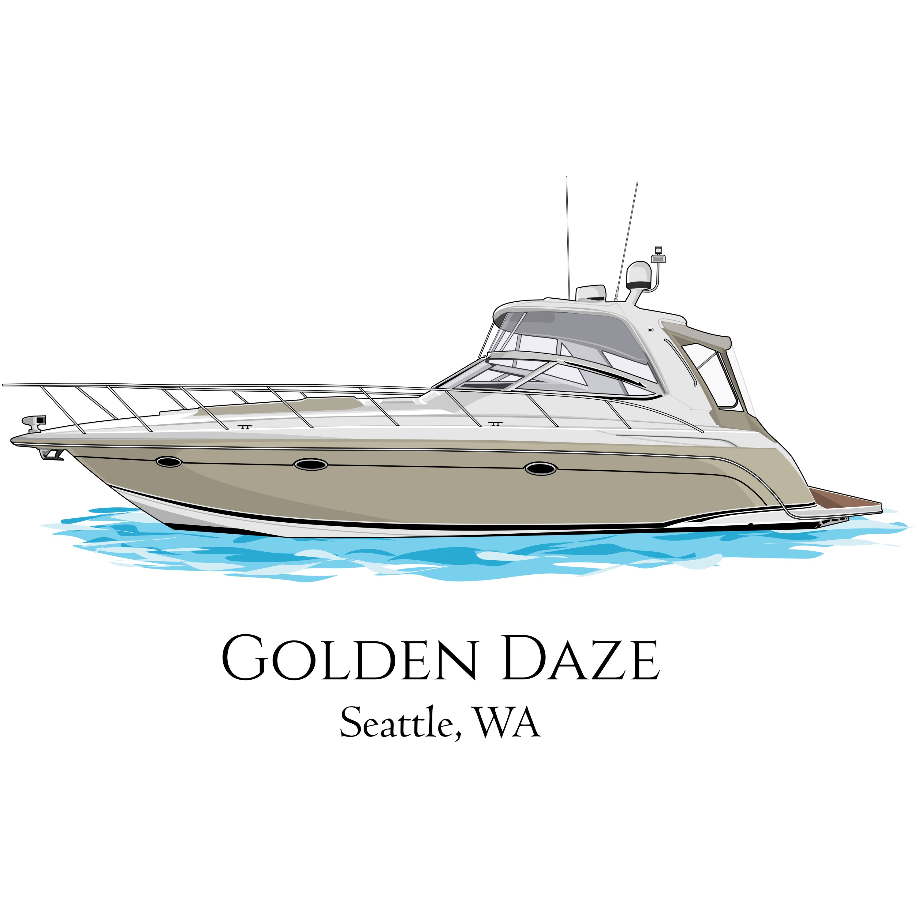 Upload a clear photo of your boat taken from the angle you want illustrated — side view is most popular. Once complete, your artwork is ready to be printed on your apparel or saved for future projects.